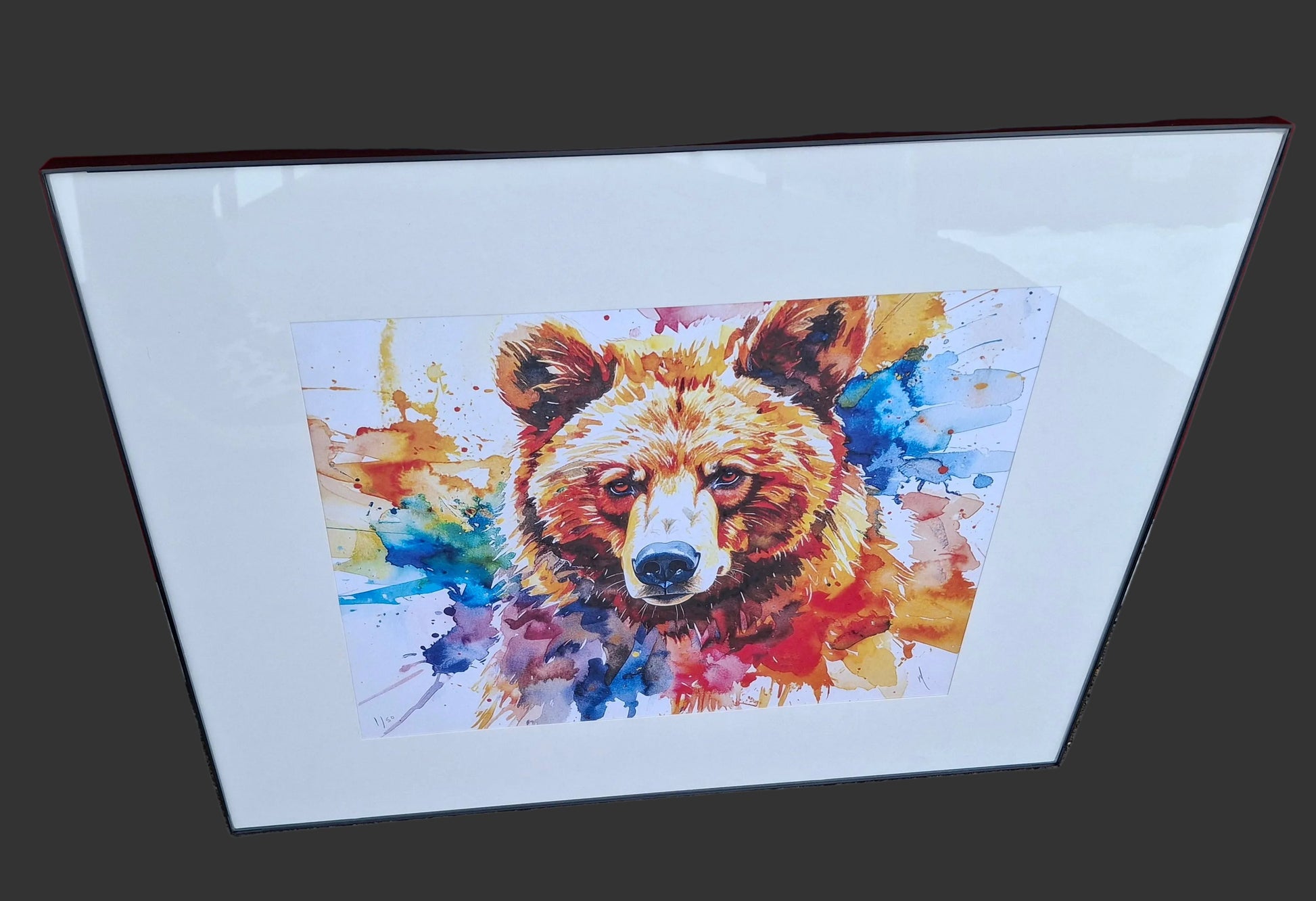 Experience the serene beauty of this digital watercolour bear created by Michael Kast. Rendered with delicate washes and naturalistic detail, this piece blends classical painting aesthetics with modern digital artistry. The warm, organic palette and expressive brushwork create an inviting focal point for any room. Whether you're an art enthusiast, interior decorator, or seeking a meaningful gift, this artwork brings warmth and sophistication to your collection.