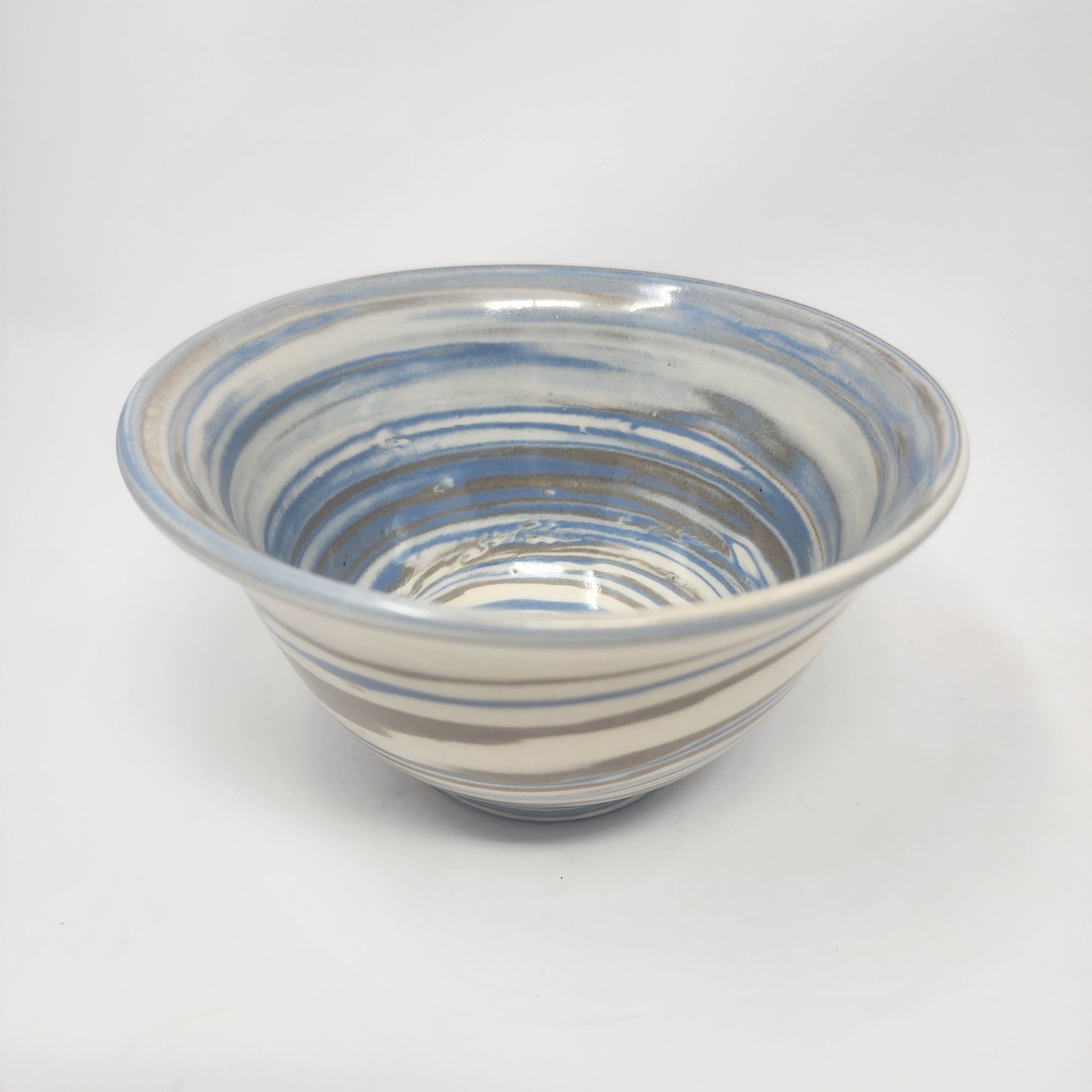 Experience the mesmerizing swirls of blue, gray, and white in this beautifully crafted bowl. Made with a unique design, this bowl adds an elegant touch to any dining table. Handmade from premium materials, it's both functional and decorative. Elevate your dining experience with this stunning swirl bowl.