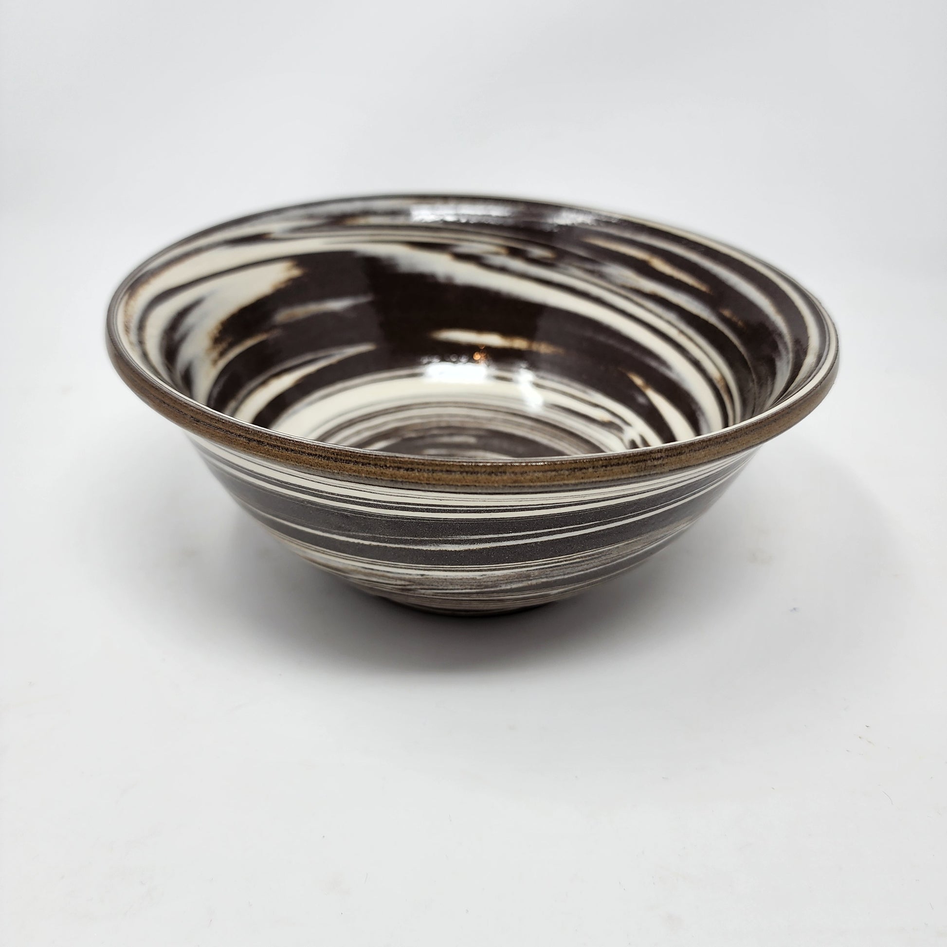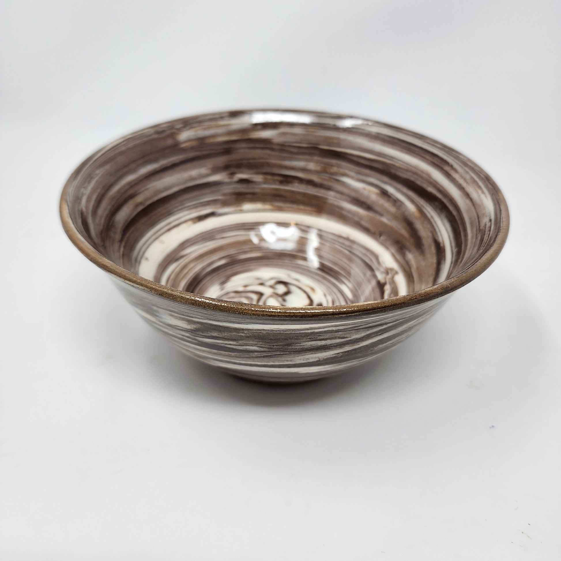 This elegant bowl features a unique swirl of brown and white, making it a stunning addition to any kitchen or dining room. The smooth surface and sturdy construction make it perfect for serving your favorite dishes. With its beautiful design, this bowl is sure to impress your guests and elevate your dining experience.