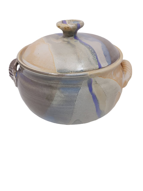 This handcrafted casserole, titled "Beach," is expertly created by potter Joanne Mikkelsen. Its design reflects a refined aesthetic inspired by coastal elements, combining functionality with artistic expression. Ideal for both serving and baking, this piece offers durability and a unique visual appeal that enhances any dining experience.