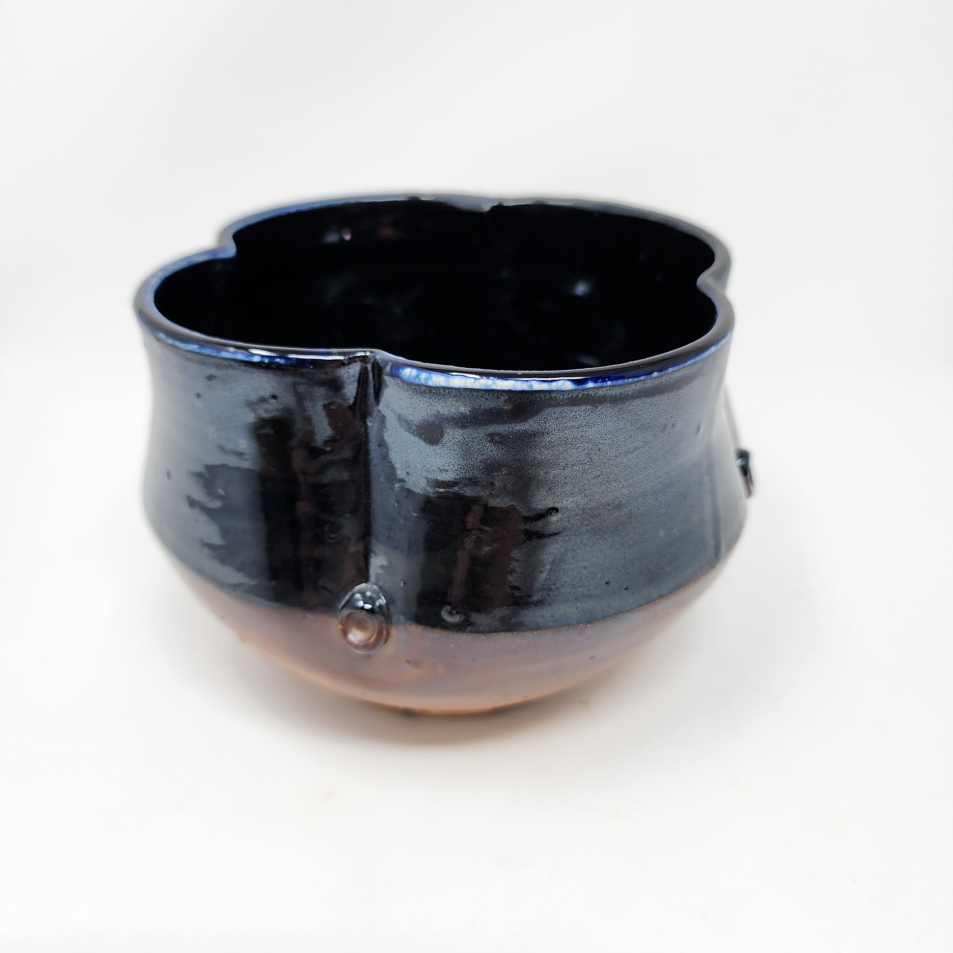 Introducing specially soda fired clover shaped bowls! Crafted with a navy glaze and earthy bases, these bowls are perfect for adding a touch of rustic elegance to your dining experience. Each piece is unique with its own variation due to the soda firing process. Elevate your table setting with these hand-crafted bowls.