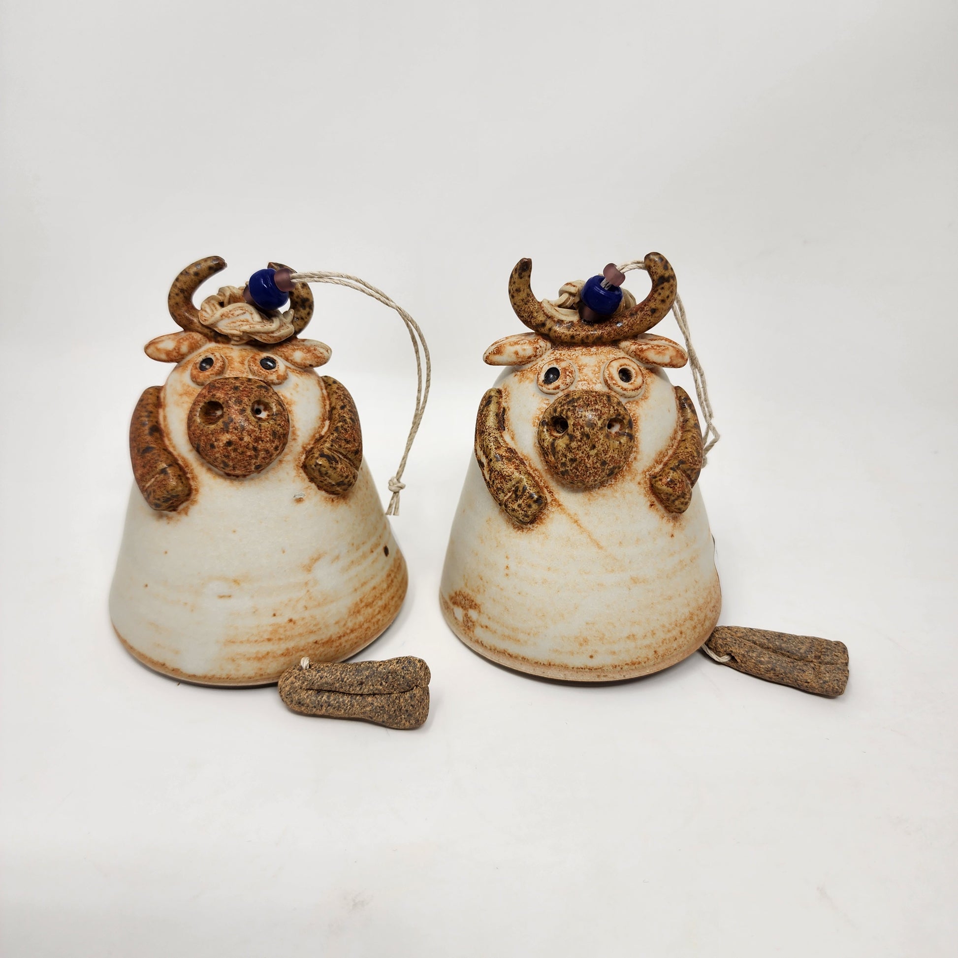 This country-style pottery cow bell ornament is the perfect addition to your holiday décor. The quirky design adds a touch of charm to your tree or can be displayed on its own. Handcrafted with expert precision, this unique ornament is truly one of a kind.