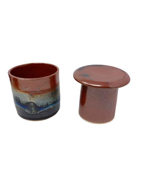 This Copper/Green French Butter Dish, expertly crafted by artisan Karen Heathman, offers a practical solution for keeping butter fresh yet spreadable. The traditional design features a water seal that maintains butter at the ideal consistency without refrigeration. Each piece showcases Heathman's meticulous attention to detail and mastery of ceramic techniques, making it both a functional kitchen essential and an artisanal statement piece.