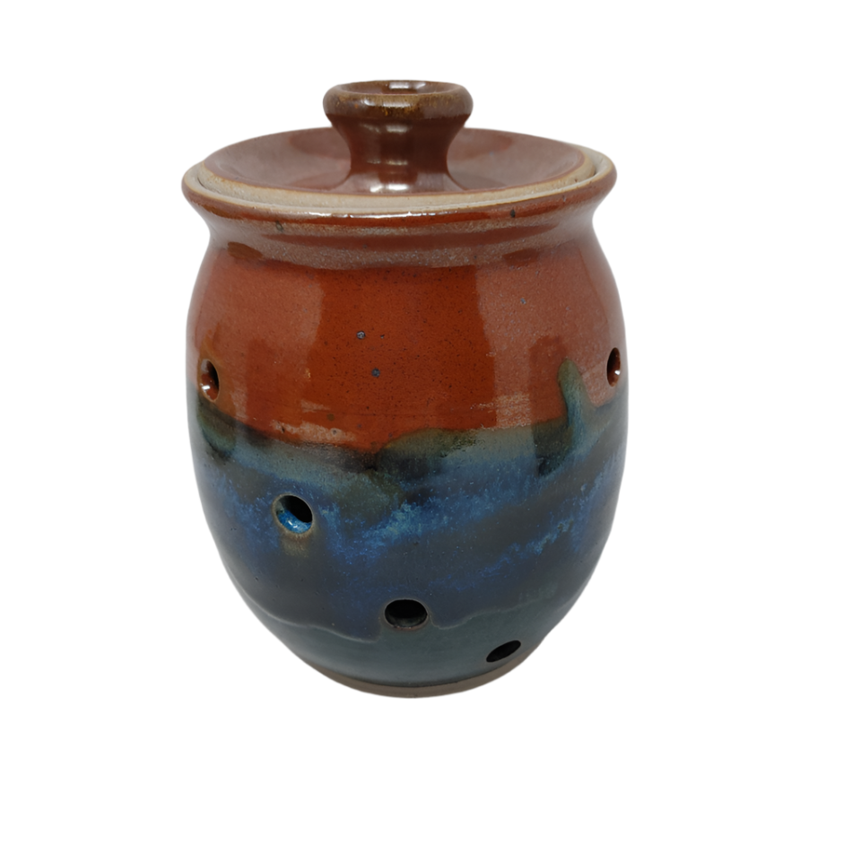 Expertly crafted by potter Joanne Mikkelsen, our Garlic Dish is a perfect addition to any kitchen or dining set. Its superb design and durable construction make it ideal for serving and storing garlic, bringing both functionality and style to your cooking routine. Made with care and precision, this dish is a must-have for any garlic lover.