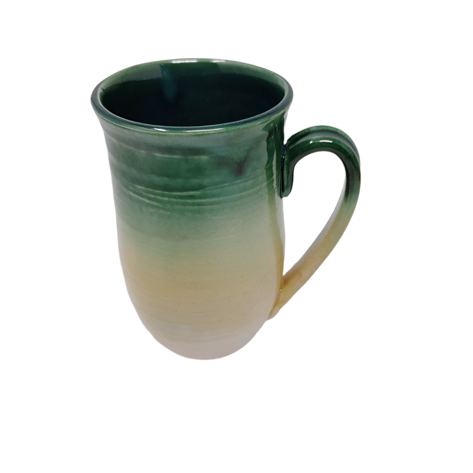 Expertly crafted by Jim and Colleen Fitzpatrick, the Green Apricot Mug is a beautiful addition to any kitchen. Enjoy your favorite hot beverage while admiring the unique design and vibrant colors. Made with high-quality materials, this mug is both durable and aesthetically pleasing.