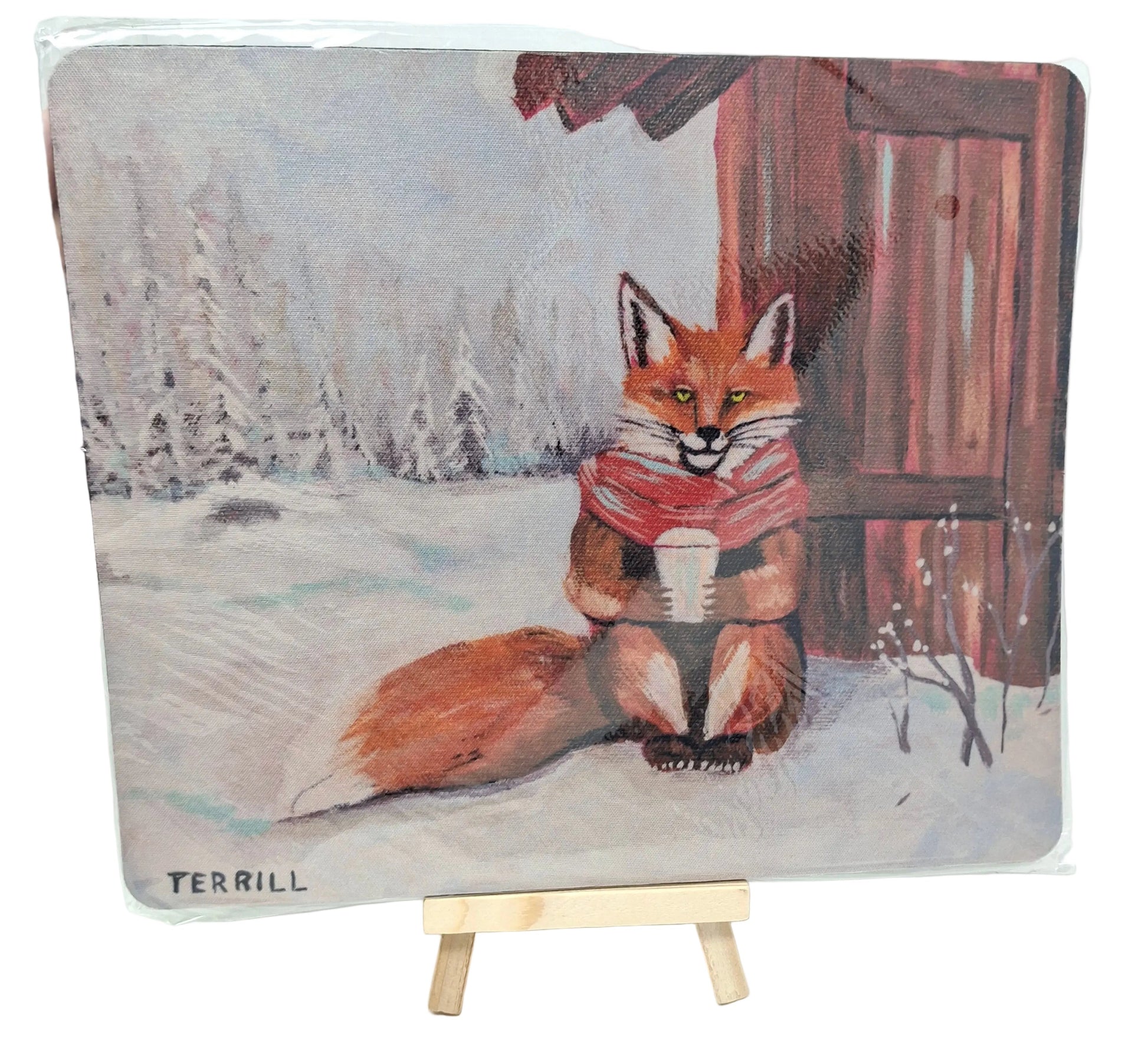 "This series is a celebration of the everyday magic found in northern wild places. By blending whimsical animal portraits with hints of human comfort—like a fox in a scarf or a moose enjoying a peaceful moment—I hope to invite viewers to slow down, smile, and find a bit of themselves in the natural world.