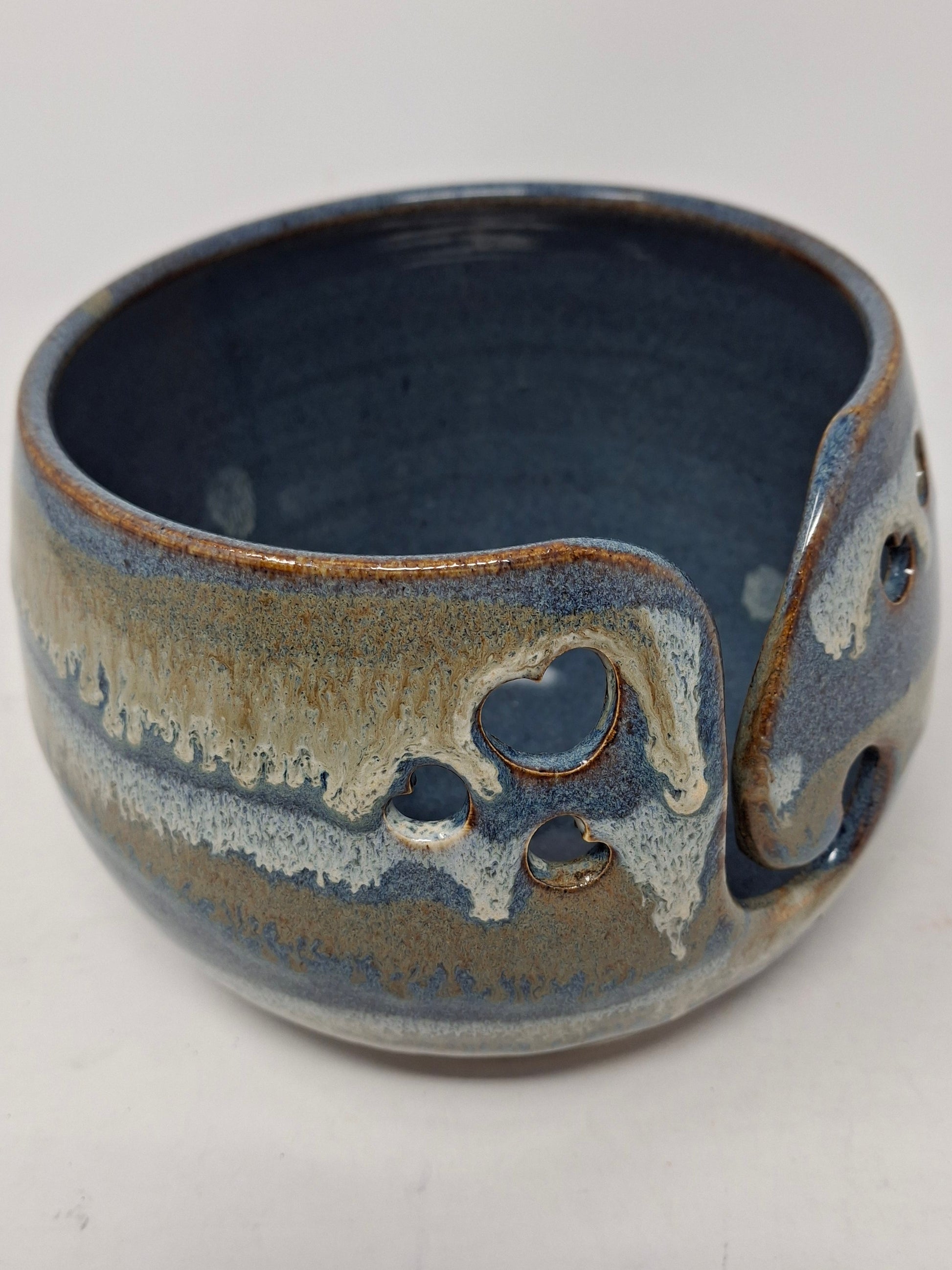 Keep your yarn organized and within arm's reach with this handcrafted pottery yarn bowl. Designed with a smooth interior and a convenient side opening, it holds your yarn securely while allowing the strand to feed smoothly as you work. Perfect for knitters and crocheters who want to eliminate tangled messes and keep projects tidy. Each piece showcases the natural beauty of artisan pottery, making it both functional and decorative. Transform your crafting experience with a bowl that's as practical as it is lovely.